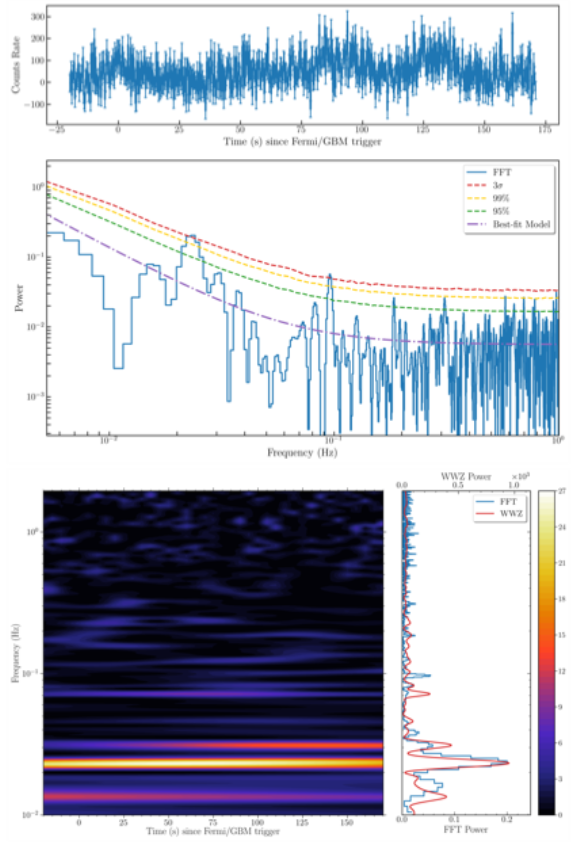 近日,中国科学院云南天文台博士研究生宋非凡和毛基荣研究员在国际天体物理期刊《The Astrophysical Journal》上发表了题为《Possible Quasi-Period Oscillation Signals in the Unique Event of GRB 250702DBE/EP250702a?》的研究论文。伽玛射线暴(Gamma-ray Burst,GRB)是短时标的高...